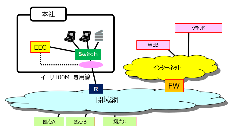 本社にEECを設置し、WANのパケットを取得するため、Routerに接続されるSwitchにミラーポートを設定しました。